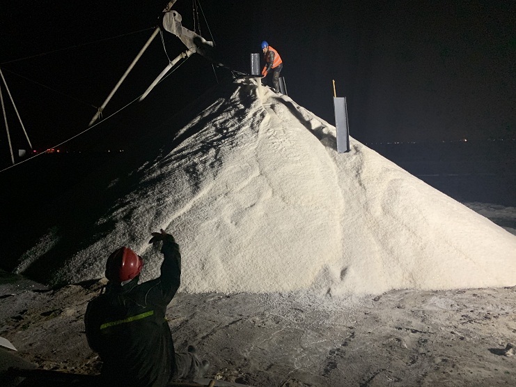 自3月3日上午,埒南制鹽15個(gè)生產(chǎn)班組共出動(dòng)5臺(tái)扒鹽機(jī)組投入春扒工作,截止3月9日,5臺(tái)機(jī)組共計(jì)扒完結(jié)晶池51塊,共扒原鹽2.5萬(wàn)余噸。