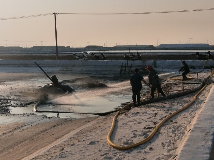 隨著秋季扒鹽的結(jié)束,冬準(zhǔn)工作逐漸拉開序幕。新河制鹽分公司抓頭抓早,開展硫酸鈣清理工作。