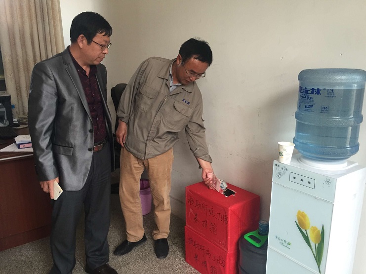 6月1日下午,新河分會(huì)主任帶著一百余名員工的委托,鄭重地將籌集上來(lái)的愛心款投入捐款箱中。(新河制鹽程龍)