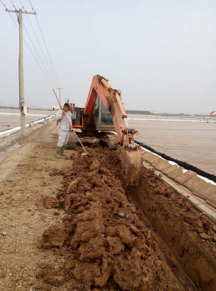 埒南制鹽分公司8班,伴隨著挖掘機(jī)的轟鳴,日曬制鹽公司生產(chǎn)班組“天溝工程”正式進(jìn)入施工試驗(yàn)階段。天溝是海鹽生產(chǎn)的配套設(shè)施,在結(jié)晶區(qū)利用天溝加鹵能有效的減少鹵水的混雜,實(shí)行分質(zhì)分段結(jié)晶,是提高原鹽質(zhì)量的重要手段。日曬制鹽公司經(jīng)過反復(fù)調(diào)研論證,用傳統(tǒng)海鹽生產(chǎn)工藝架接礦鹵生產(chǎn),在生產(chǎn)班組架設(shè)天溝,實(shí)施串聯(lián)、并聯(lián)加鹵相結(jié)合,給鹵水的調(diào)配、除硫、除混帶來便利,實(shí)現(xiàn)分質(zhì)分段結(jié)晶,為原鹽質(zhì)量的提高寫下了重重的一筆,同時(shí)天溝加鹵可以減少班組流動(dòng)機(jī)泵的使用頻率,提高了班組整體安全生產(chǎn)系數(shù)。