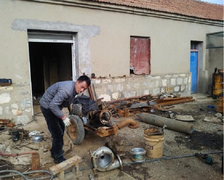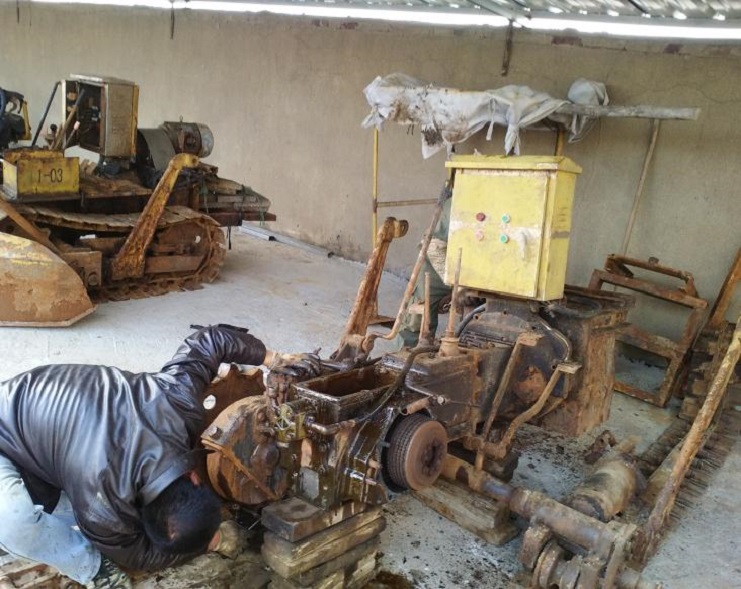 最近,日曬制鹽新河分公司2016年下半年扒鹽工作,接近尾聲,各扒鹽機(jī)組陸續(xù)完成扒鹽任務(wù),機(jī)械先后搬回分公司。該分公司機(jī)電組為了確保來年扒鹽機(jī)械能夠拿得出,打得響,積極對回來的機(jī)械進(jìn)行維修、保養(yǎng);目前,已完成2套機(jī)械的保養(yǎng)工作。(圖為機(jī)電工人正在維修、保養(yǎng)扒鹽機(jī)械)。