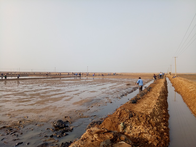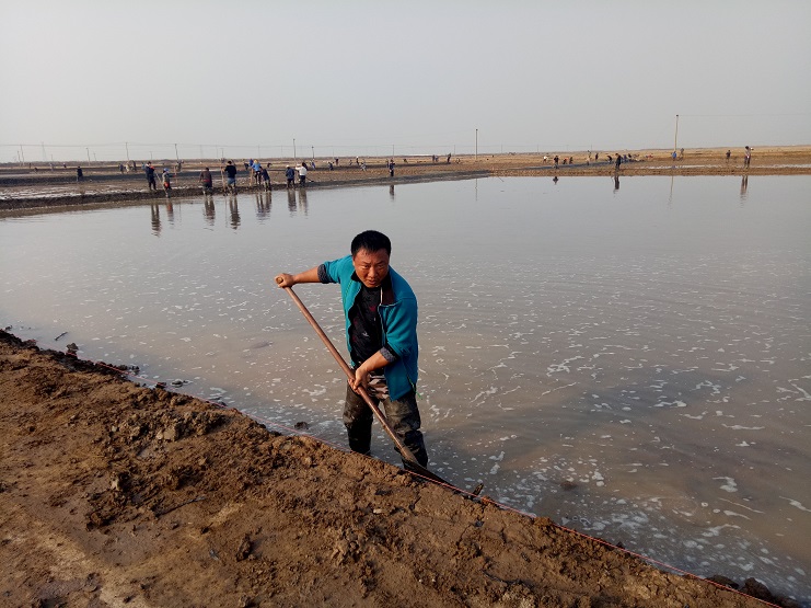 近日,實(shí)業(yè)公司制鹽分公司海鹽基地,一班班組灘場改造呈現(xiàn)出一片繁忙的景象。日曬制鹽新河制鹽分公司、埒南制鹽分公司等兄弟單位近兩日,輪流調(diào)動(dòng)數(shù)百余人參加實(shí)業(yè)公司海鹽基地?fù)茰献鲔髸?huì)戰(zhàn)。現(xiàn)場場面十分壯觀,大家干得熱火朝天:有挖泥澆水的、踩泥打堰的、抹埝找平的......員工們齊心協(xié)力地打好這次攻堅(jiān)戰(zhàn)。本次共計(jì)撈溝做埝近四千米。實(shí)業(yè)公司全體員工對兩公司的辛勤勞動(dòng)給予了贊許和由衷的感謝。(史祥燕)