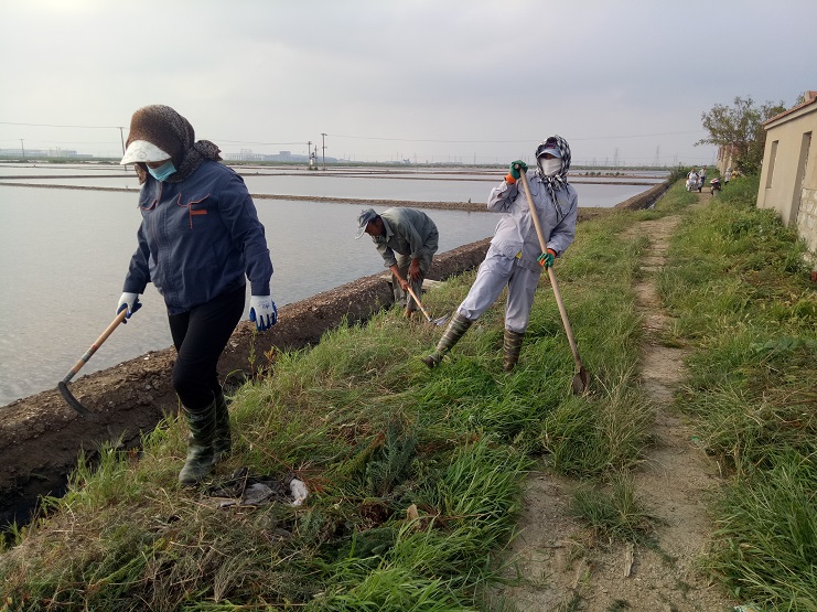 近日,實業(yè)公司海鹽基地,柴門區(qū)三個班組加緊對灘場進(jìn)行除草行動。夏日雜草叢生,嚴(yán)重影響灘容灘貌,且對灘格、溝道等造成制鹵障礙,各班組長帶領(lǐng)工人緊抓時間、人機(jī)結(jié)合除草。截止今日,三個班組共除草九千余米。(實業(yè)公司)
