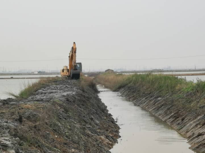 為了保障養(yǎng)殖正常生產(chǎn),營造良好的投資環(huán)境。近期,養(yǎng)殖服務(wù)公司配合投資發(fā)展部對部分淤塞嚴重,長滿雜草的海水養(yǎng)殖池塘進、排水渠道進行疏通。圖為南翼綠化工程公司正在用挖掘機械理順進、排水渠道。(養(yǎng)殖服務(wù))