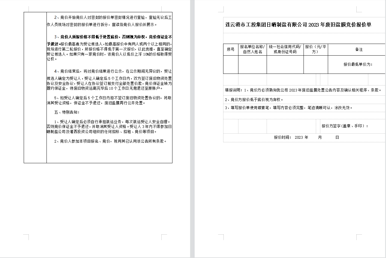 連云港市工投集團(tuán)日曬制鹽有限公司廢舊鹽膜處置公告