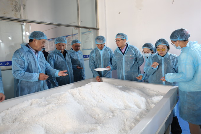 10月13日上午,蘇鹽協(xié)會(huì)副理事長(zhǎng)伏運(yùn)景帶領(lǐng)省戰(zhàn)略與發(fā)展研究中心及省經(jīng)濟(jì)和信息化研究院相關(guān)研究人員一行,到我公司開(kāi)展編撰省鹽行業(yè)年度發(fā)展報(bào)告相關(guān)企業(yè)調(diào)研。集團(tuán)公司黨委委員、總會(huì)計(jì)師匡友本,我公司主要領(lǐng)導(dǎo)陪同調(diào)研。伏運(yùn)景一行參觀(guān)了公司雪花鹽車(chē)間、包裝鹽車(chē)間,聽(tīng)取公司基本情況和發(fā)展情況介紹。伏運(yùn)景對(duì)我公司充分重視本次調(diào)研工作表示感謝,肯定了鹽改以來(lái)我公司先導(dǎo)性發(fā)展經(jīng)驗(yàn)和成就。(金宣)