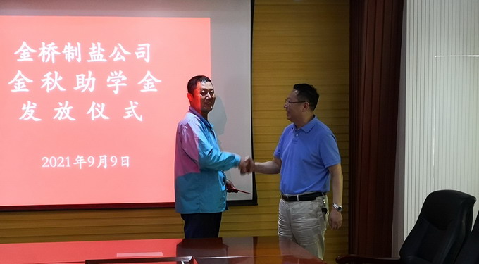 9月9日下午,我公司舉行金秋助學(xué)金發(fā)放儀式,公司黨委書(shū)記、董事長(zhǎng)、總經(jīng)理朱桂玉為受助學(xué)子家庭發(fā)放助學(xué)金,公司黨委副書(shū)記、紀(jì)委書(shū)記、工會(huì)主席曹開(kāi)明主持發(fā)放儀式。
