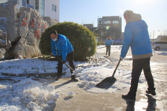12月29日,連云港市各地普降大雪,氣溫低、積雪厚、道路結冰,給公司職工的安全出行和生產生活帶來很多不便。29-30日,公司領導朱桂玉、曹開明、田磊、何啟明、邵琴、李忠祥帶領廣大職工群眾開展了義務掃雪活動。大家冒著風雪,不畏嚴寒,對路面積雪進行清掃,鏟除了廠區(qū)主干道的冰層,保障了公司職工安全出行和安全生產工作的開展。(金宣)