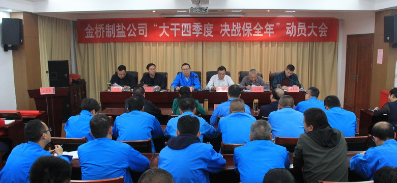 會上,副總經(jīng)理惠志明作了《2019年1-9月份經(jīng)濟(jì)活動分析》。然后,副總經(jīng)理曹開明宣讀了《2019年大干四季度勞動競賽意見》。接著,董事長、黨委書記、總經(jīng)理朱桂玉作了動員講話。最后,加工鹽車間、包裝鹽車間、品種鹽分公司進(jìn)行表態(tài)發(fā)言。