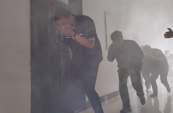 演練分為火災(zāi)應(yīng)急疏散、火災(zāi)應(yīng)急救援、有限空間應(yīng)急救援三個部分展開。在火災(zāi)應(yīng)急疏散演練中,設(shè)定三樓會議室為模擬火災(zāi)現(xiàn)場,人員2分鐘內(nèi)從指定逃生路線規(guī)范、有序、迅速撤離到了安全地帶;火災(zāi)事故應(yīng)急救援和有限空間應(yīng)急救援分別模擬紙箱庫著火及地龍有害氣體窒息,分信息報告、啟動應(yīng)急響應(yīng)、現(xiàn)場警戒、醫(yī)療救護(hù)、事故搶險等各處置環(huán)節(jié),整個演練緊張有序,過程流暢,達(dá)到檢驗(yàn)應(yīng)急預(yù)案的可行性和提高應(yīng)急救援人員的應(yīng)急處置能力的效果,為完善我公司應(yīng)急預(yù)案提供實(shí)踐依據(jù)。