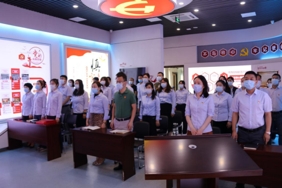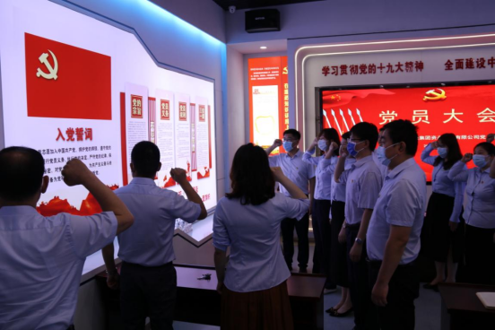 新老黨員一起面向鮮紅的黨旗,重溫入黨誓詞。莊嚴(yán)隆重的氛圍,鏗鏘有力的誓言,使全體黨員更加堅(jiān)定了為黨和人民事業(yè)奮斗終生的決心。