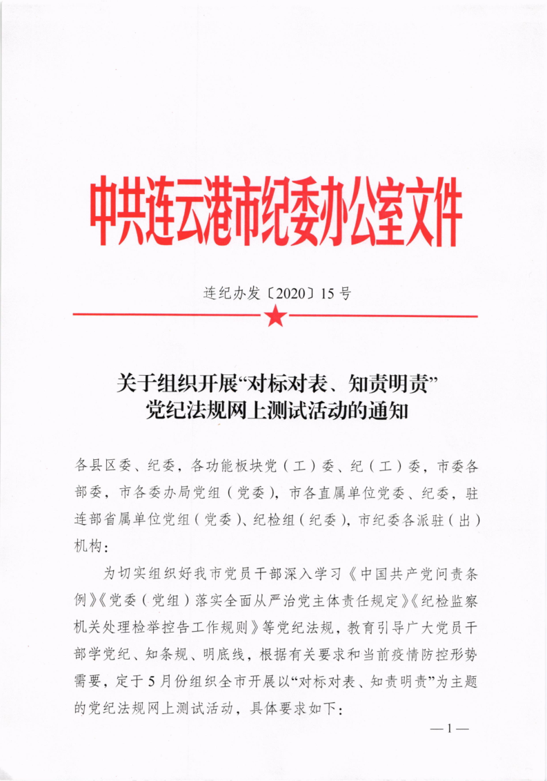 關(guān)于組織開(kāi)展“對(duì)標(biāo)對(duì)表、知責(zé)明責(zé)”黨紀(jì)法規(guī)網(wǎng)上測(cè)試活動(dòng)的通知