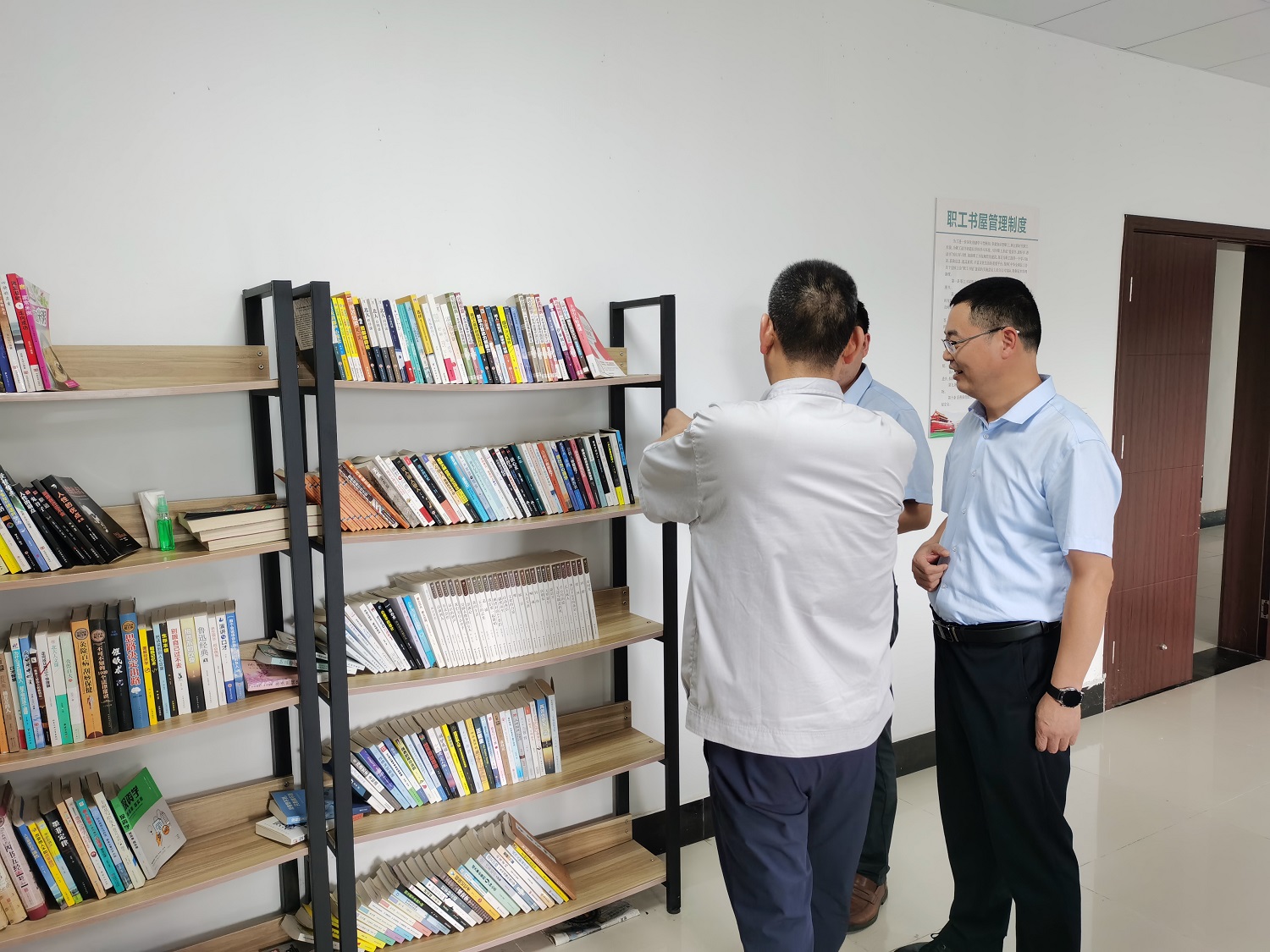 在實(shí)地參觀過(guò)程中,深入了解了書屋建設(shè)、布局、管理、圖書分類及更新、登記等具體方面的內(nèi)容,并就相關(guān)黨建、工會(huì)活動(dòng)開展情況與神特新材料黨支部副書記、工會(huì)主席袁忠等進(jìn)行了交流討論。