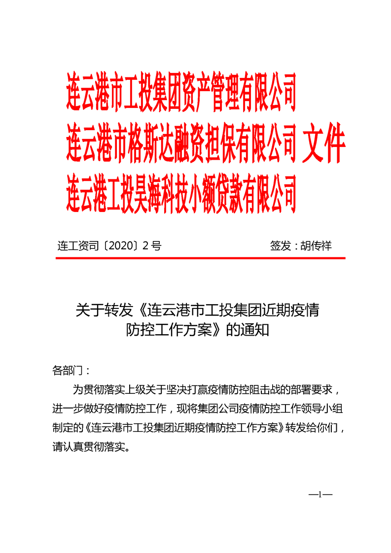 《連云港市工投集團(tuán)近期疫情防控工作方案》的通知