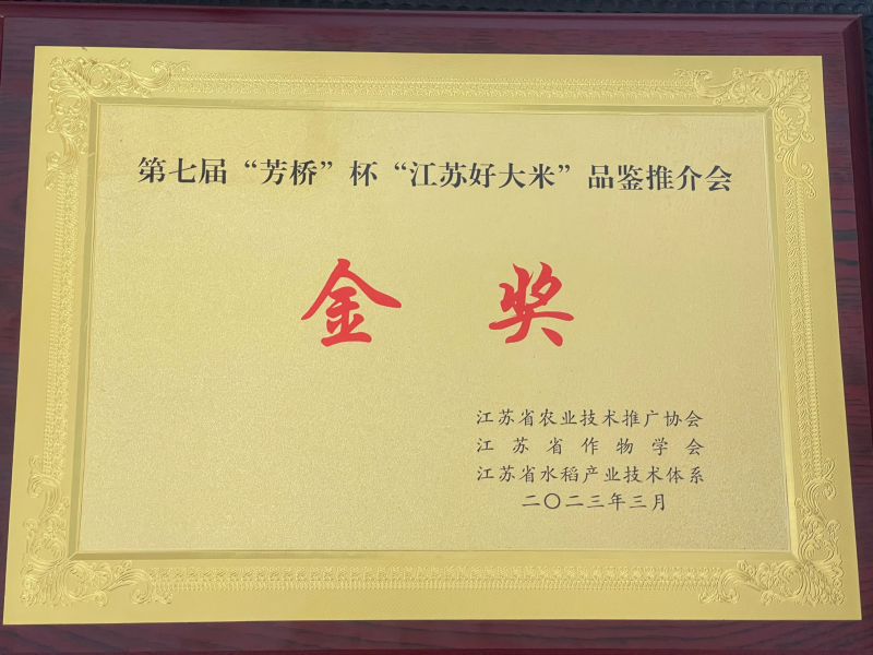 ? ? ? ?在近期揭曉的第七屆“芳橋”杯“江蘇好大米”品鑒推介活動(dòng)上,我公司“鹽田玉”香米產(chǎn)品再次榮獲金獎(jiǎng)。