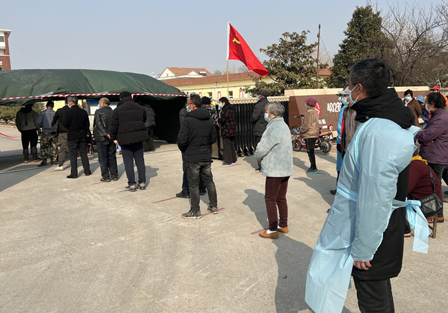 圖為黨員霍晶協(xié)助醫(yī)務(wù)人員對居民進行核酸采樣