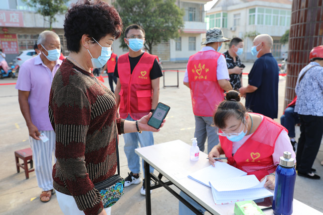 為保障核酸檢測工作順利進行,青口公司黨員服務隊志愿者和黃沙坨社區(qū)工作人員,提前劃分好信息登記組、人員引導組、秩序保障組和后期保障組,全方位協調管控核酸檢測現場,保障活動順利開展。在核酸檢測開始前,不少居民已經來到核酸檢測現場排隊等候,秩序保障組的工作人員一邊維持秩序一邊拿著小喇叭,在一旁提醒大家:請大家規(guī)范佩戴口罩,主動出示蘇康碼和行程碼,保持一米線安全距離,準備好身份證、采樣碼,有序排隊。同時,青口公司志愿者們還積極幫助沒有智能手機和不會掃碼的老年居民,進行二維碼掃碼登記,提高了核酸檢測的效率和速度,也讓拘謹的老人露出了笑臉。