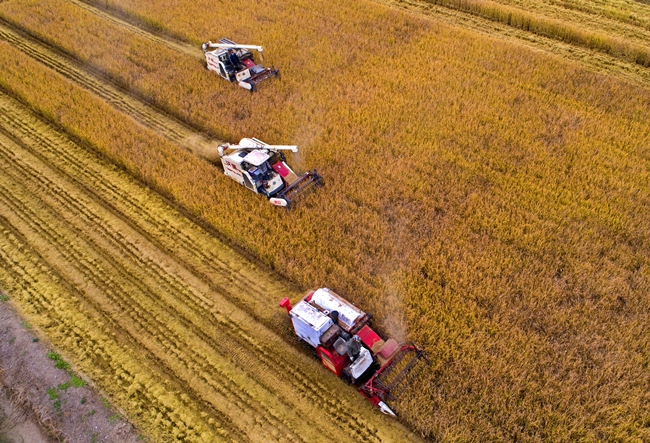 ? ?10月28日,青口投資公司的萬畝鹽堿地標(biāo)準(zhǔn)化農(nóng)田里,有機(jī)水稻示范點(diǎn)率先開鐮收割,現(xiàn)代化收割機(jī)正開足馬力進(jìn)行水稻收割作業(yè),到處一派繁忙喜悅的秋收景象。
