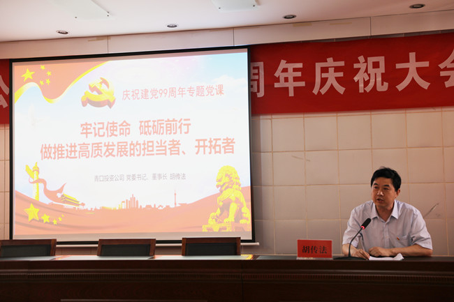 為了慶祝中國共產(chǎn)黨建黨99周年,繼承和發(fā)揚黨的光榮傳統(tǒng),彰顯基層黨組織的戰(zhàn)斗堡壘作用和黨員先鋒模范作用,6月28日上午,青口投資公司隆重召開紀(jì)念建黨99周年慶祝大會暨“七一”表彰大會。會議由黨委副書記、工會主席梁永主持,全體領(lǐng)導(dǎo)班子成員、各單位黨政負(fù)責(zé)人、優(yōu)秀黨員代表、機關(guān)全體管理人員參加會議。