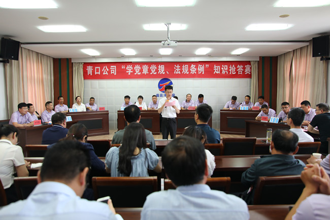 為推動黨員干部進一步掌握基本標準,增強黨的意識、黨員意識、紀律意識,更好地堅守初心、踐行使命,6月23日上午,青口公司舉辦“學(xué)黨章黨規(guī)、法規(guī)條例”知識搶答賽活動。來自公司8個支部的24名選手參加了比賽。公司黨委班子成員出席了活動。機關(guān)全體管理人員、各單位黨政工負責(zé)人到場觀看。