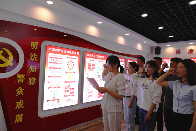 會(huì)后,全體談話人員右手舉拳,作出莊嚴(yán)承諾,表示會(huì)在新的崗位上自覺(jué)遵守黨規(guī)黨紀(jì),嚴(yán)于律己,忠于職守,以實(shí)際行動(dòng)為企業(yè)發(fā)展貢獻(xiàn)力量。新提拔及交流人員進(jìn)行了廉政知識(shí)測(cè)試并遞交了《黨員干部廉潔從業(yè)承諾書》。(瞿 方)