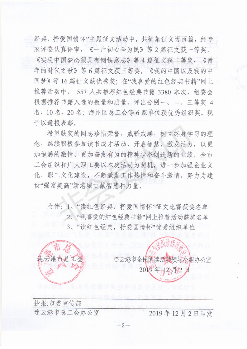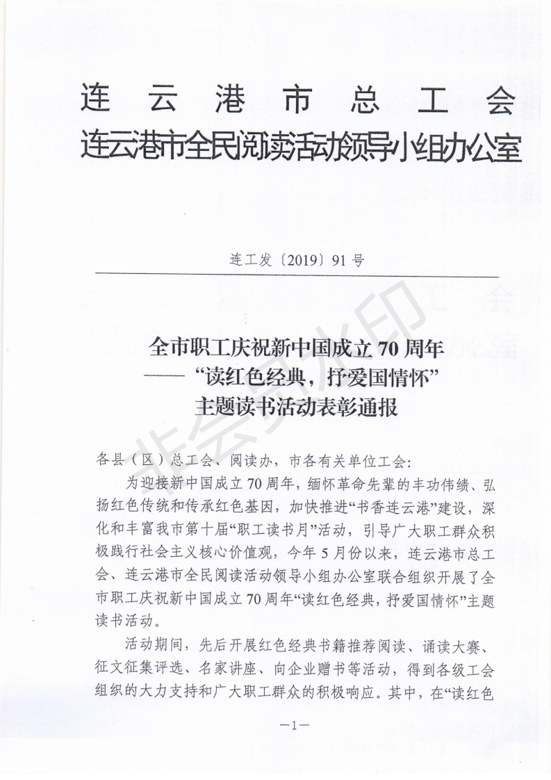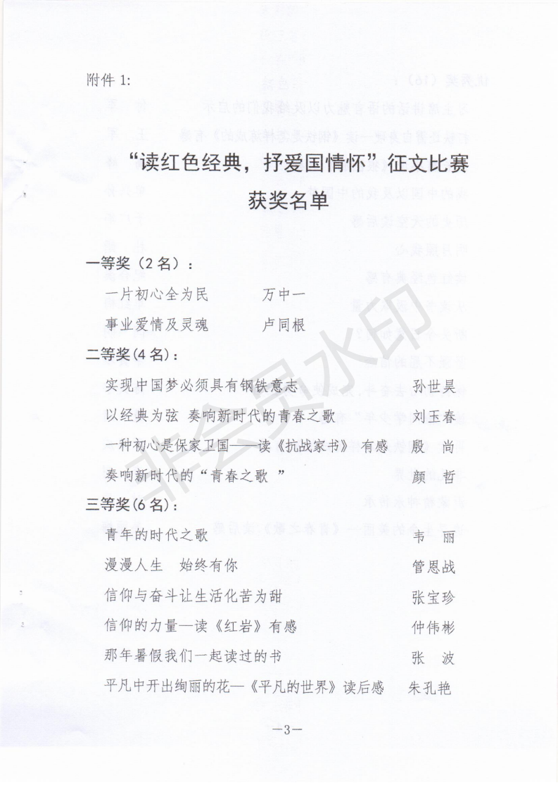 在全市職工慶祝新中國成立70周年“讀紅色經(jīng)典,抒愛國情懷”主題征文活動(dòng)中。經(jīng)專家評委認(rèn)真評審,我公司三位員工的文章獲得獎(jiǎng)項(xiàng),其中,萬中一的《一片初心全為民》榮獲一等獎(jiǎng);仲偉彬的《信仰的力量-讀《紅巖》有感》榮獲三等獎(jiǎng);杜娟《明月照我心》榮獲優(yōu)秀獎(jiǎng)。