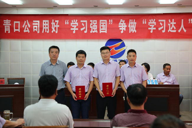 為進一步用好“學(xué)習強國”學(xué)習平臺,檢驗學(xué)習效果,不斷激發(fā)廣大員工學(xué)習熱情,8月30日下午,青口公司舉辦用好“學(xué)習強國”爭做“學(xué)習達人”知識競賽活動。來自公司9個支部的27名選手參加了比賽。公司黨委班子成員出席了活動。機關(guān)全體管理人員到場觀看。