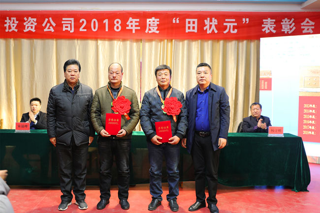 11月29日,在職工活動(dòng)室隆重舉行2018年度“田狀元”表彰大會(huì)。投資公司黨委書記、董事長胡傳法及班子全體成員參會(huì)。基層副科級(jí)以上、機(jī)關(guān)全體管理人員及部分條田工參加。會(huì)議由投資公司黨委副書記、工會(huì)主席史祥平主持。