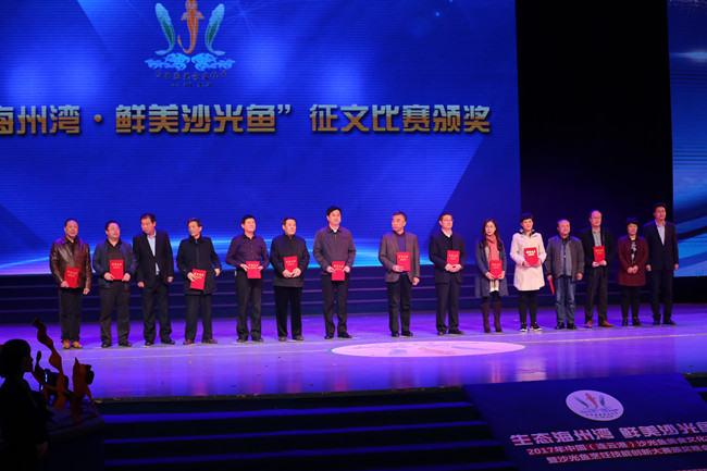 在2017中國(連云港)沙光魚美食文化節(jié)頒獎(jiǎng)晚會現(xiàn)場舉行了“生態(tài)海州灣 鮮美沙光魚”專題征文比賽頒獎(jiǎng)儀式上,胡傳法董事長榮獲大賽一等獎(jiǎng)。