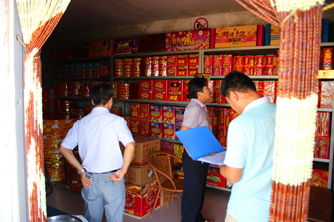 ? ? ? ?9月1日上午,公司安全技術部對全場范圍內6家煙花爆竹經營店進行安全生產大檢查,對檢查中個別店鋪存在的輕微超量儲存現(xiàn)象提出立即整改要求。(王偉)