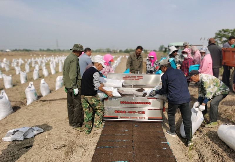 5月9日,大新農(nóng)場全面啟動育秧作業(yè),工人們在水稻育秧播種機(jī)兩側(cè),分工有序地進(jìn)行流水線育秧,確保農(nóng)業(yè)生產(chǎn)開好局、起好步。據(jù)統(tǒng)計,今年自營農(nóng)田共6228畝,預(yù)計需播機(jī)插秧27萬盤。(劉楊)
