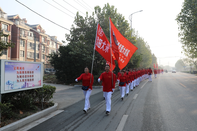 10月20日清晨,米業(yè)營銷公司聯(lián)合海州區(qū)微馬隊共同開展健步走活動,吸引了共三百余名健身愛好者參與其中。本次活動旨在進一步宣傳提高“鹽田玉”品牌的知名度,讓廣大市民在積極運動的過程中認識“鹽田玉”、了解“鹽田玉”,拓寬“鹽田玉”宣傳渠道,提倡積極健康的生活方式,倡導(dǎo)廣大市民吃優(yōu)質(zhì)大米,過健康生活。本次健步走從海州區(qū)石棚山景區(qū)廣場出發(fā),內(nèi)環(huán)朐陽門、海州古城、秦東門大街返回,全程3.6公里。?(顧?益)