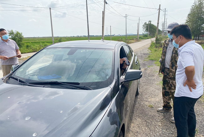 ? ? ? ?“請(qǐng)問(wèn)你們是從哪里來(lái)?請(qǐng)戴好口罩,出示行程碼、健康碼。”大新農(nóng)場(chǎng)黨支部黨員與部分職工一道,堅(jiān)決當(dāng)好疫情防控的“守門(mén)員”,在對(duì)外來(lái)車(chē)輛登記進(jìn)入人員信息,檢查健康碼、行程碼,開(kāi)展疫情防護(hù)知識(shí)宣傳。