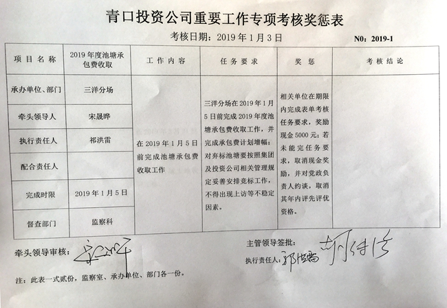 【表單考核】青口投資公司重要工作專(zhuān)項(xiàng)考核獎(jiǎng)懲表