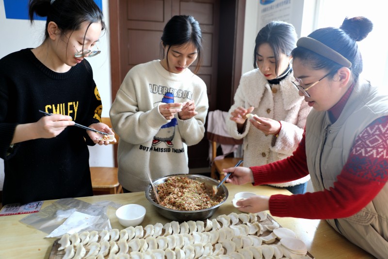 ? ? ? ?活動現(xiàn)場,大家有說有笑,默契配合,有的揉面團(tuán)、有的拌餃餡、有的搟面皮、有的包餃子,大家互相切磋著包餃子的技巧,好不熱鬧,包出來的餃子也是形態(tài)各異,有元寶狀、小船狀、三角狀,還有獨(dú)具特色的花邊餃,女職工們紛紛拿著自己的勞動“成果”,擺在手心互相比較著餃子的形狀,隨著一雙雙靈巧的小手來回舞動著,在一片喜慶、溫馨的氛圍中,一個個口味不一的餃子就展現(xiàn)在大家面前。當(dāng)一盤盤熱氣騰騰的餃子端上桌,食堂瞬間香氣四溢,吃著自己親手包的餃子,每個人的臉上無不洋溢著滿足、幸福的笑容。