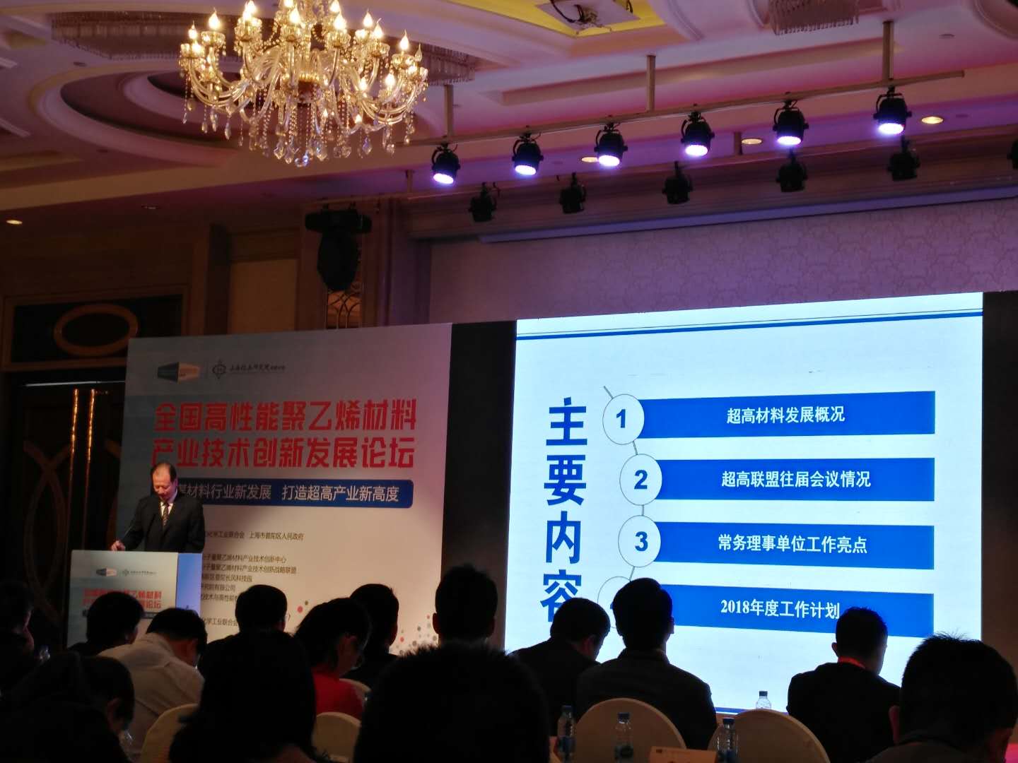 3月27日-29日,神特公司受邀參加由上?;ぱ芯吭河邢薰?、全國超高分子量聚乙烯材料產(chǎn)業(yè)技術(shù)創(chuàng)新戰(zhàn)略聯(lián)盟、全國超高分子量聚乙烯材料產(chǎn)業(yè)技術(shù)創(chuàng)新中心、上海張江高新區(qū)普陀園長風(fēng)科技園、聚烯烴催化技術(shù)與高性能材料國家重點(diǎn)實(shí)驗(yàn)室聯(lián)合主辦的2018全國高性能聚乙烯材料產(chǎn)業(yè)技術(shù)創(chuàng)新發(fā)展論壇。董事長張其海攜蔣干兵、張海寧、王爽芳三位副總參加了此次論壇。
