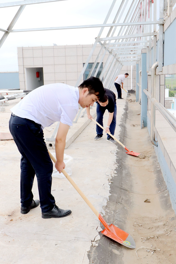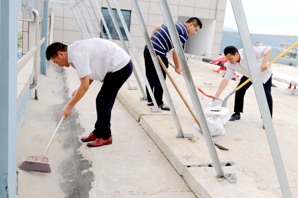 為凈化、美化公司辦公樓樓頂環(huán)境,消除積水隱患,8月26日上午,公司組織黨員、團(tuán)員青年志愿者開展了專項清理整治行動。志愿者不畏艱辛,對樓頂進(jìn)行了細(xì)致清掃,認(rèn)真疏通排水口,力爭陰雨天氣不再出現(xiàn)積水現(xiàn)象。(神特宣)