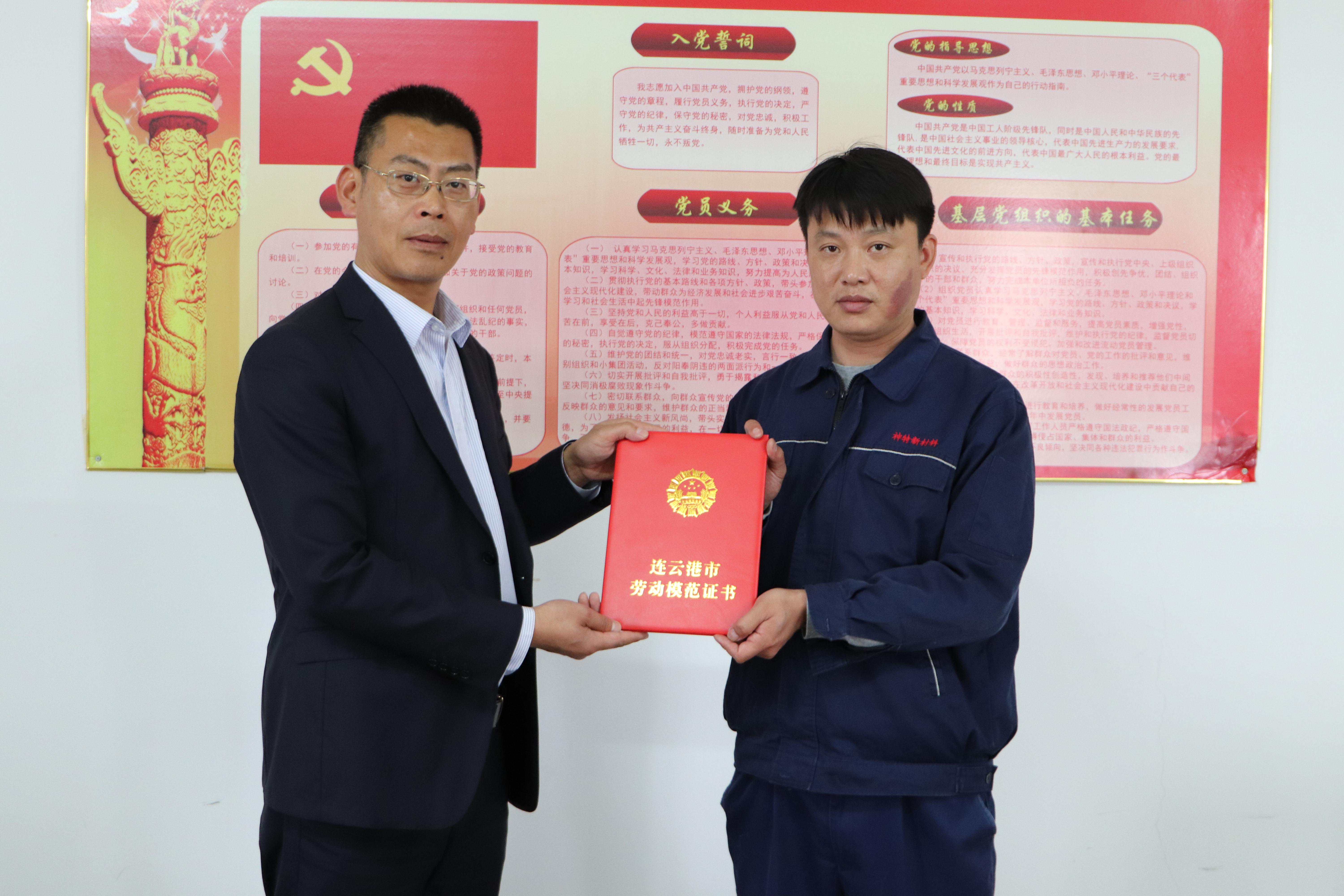 近日,我公司員工封安獲得連云港市勞動模范殊榮。封安同志現為公司生產車間甲班大班長。他,九載如一日,始終保持著執(zhí)著、敬業(yè)和精益求精的精神,在平凡的崗位上做出不平凡的業(yè)績,詮釋了新時代工匠精神,展示了勞動者模范風采,成為一線工人的杰出代表。
