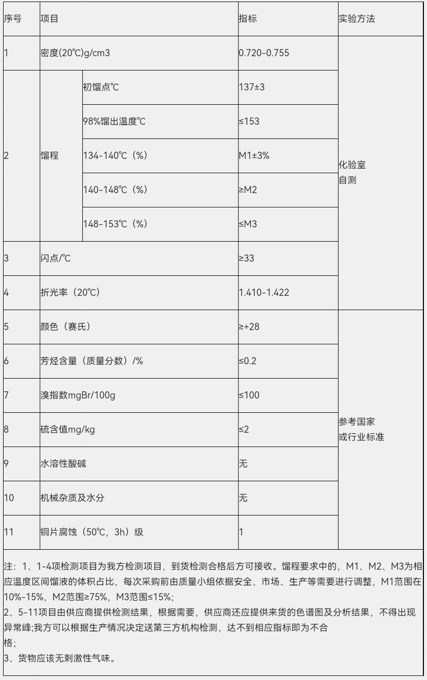 連云港神特新材料有限公司招標文件編號:STZB-202304 碳氫清洗劑(輕質(zhì)白油)技術(shù)指標確認: