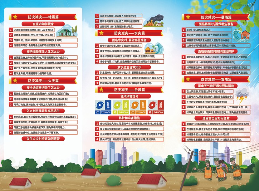 5月12日是我國(guó)第17個(gè)全國(guó)防災(zāi)減災(zāi)日。今年防災(zāi)減災(zāi)日主題是:“人人講安全、個(gè)個(gè)會(huì)應(yīng)急——排查身邊災(zāi)害隱患”,5月12日至18日是防災(zāi)減災(zāi)宣傳周。