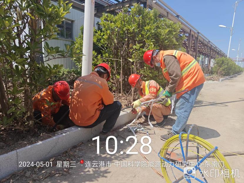 在中科院的路燈電纜施工現(xiàn)場(chǎng),2000來(lái)米的電纜穿管工程時(shí)間緊任務(wù)重!舊路燈基座電纜孔全被泥土堵塞,穿線相當(dāng)困難!在“老黃?!眴桃猿蓭ьI(lǐng)下,市政班組全員在崗,集思廣益克服困難。大家顧不上烈日當(dāng)頭、蚊蟲(chóng)叮咬,合起號(hào)子加油干,確保兩天拿下全部工程量。