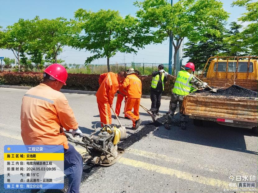 云池路電纜開(kāi)槽溝下過(guò)路鋼管路面瀝青恢復(fù)工程,這是翔立人第一次干瀝青鋪設(shè)活,看起來(lái)有模有樣。