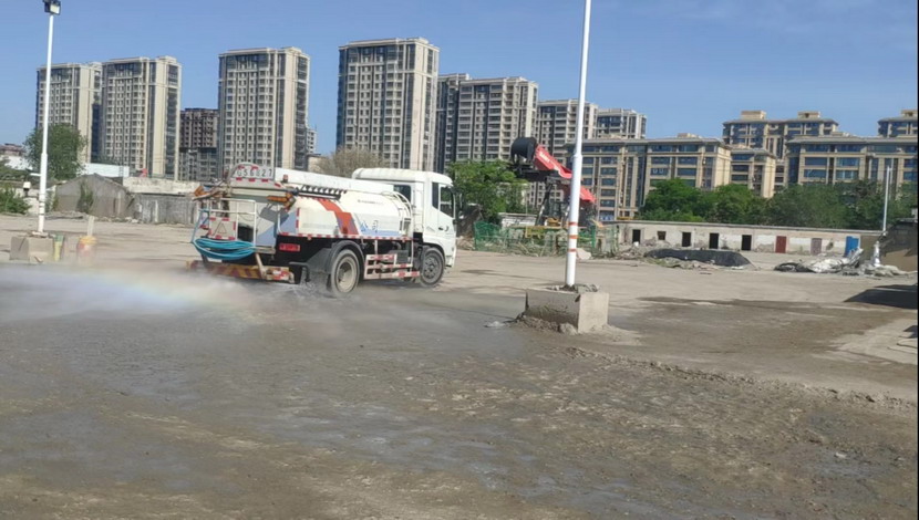 ? ? ??5月1日,裕達(dá)分公司加強(qiáng)了對(duì)光伸、德蘭市場(chǎng)商鋪及周邊貨場(chǎng)巡查力度,確保節(jié)日期間安全穩(wěn)定,重點(diǎn)對(duì)330畝、瑞橋貨場(chǎng)加強(qiáng)環(huán)境監(jiān)管。同時(shí),對(duì)接環(huán)衛(wèi)分公司,聯(lián)系灑水車(chē)輛對(duì)瑞橋貨場(chǎng)裸露地塊進(jìn)行一日四次的灑水降塵,確保場(chǎng)地及周邊環(huán)保無(wú)揚(yáng)塵。