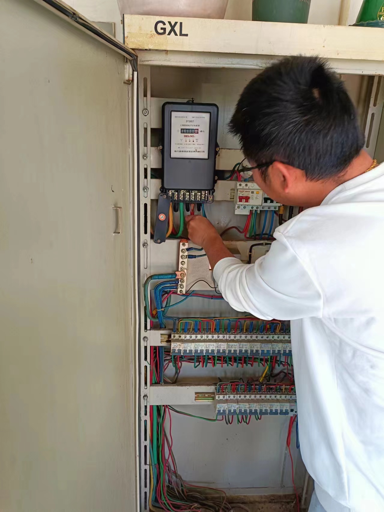 ? ? ??為確保節(jié)日期間園區(qū)安全穩(wěn)定運(yùn)行和電力可靠保障,美多利公司提前部署,落實(shí)安全生產(chǎn)、應(yīng)急搶修等重點(diǎn)措施,做好園區(qū)各項(xiàng)安全準(zhǔn)備工作,認(rèn)真梳理線路設(shè)備的薄弱環(huán)節(jié),加強(qiáng)對(duì)重要設(shè)備的巡視檢查。5月1日,班組成員金同喜、何愷對(duì)值班室配電柜突發(fā)故障予以排查檢修,及時(shí)消除安全隱患。