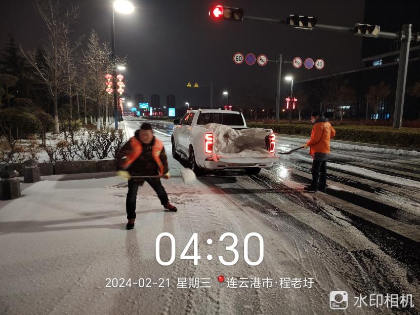 ? ? 2月20日晚,港城迎來又一輪降雪,低溫雨雪冰凍天氣對城市道路交通和市民出行產(chǎn)生較大影響。為確保雪天道路暢通及市民出行安全,綠化分公司聞雪而動,從2月19日晚開始,組織應急隊伍連夜行動,在花果山大道、黃海大道等開發(fā)區(qū)主干道拋撒融雪劑,開展清雪除冰工作,掀起一場齊心協(xié)力、團結(jié)互助的戰(zhàn)風雪、保通暢行動。
