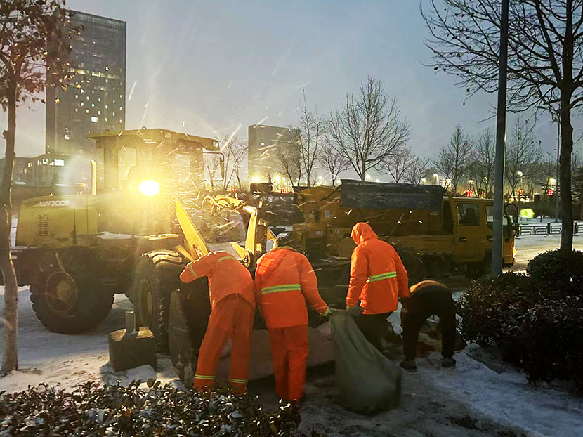 ? ? 受冷空氣影響,1月31日晚,港城突降瑞雪。公司第一時間啟動掃雪除冰應(yīng)急預(yù)案,上下聯(lián)動,道路保潔、市政養(yǎng)護(hù)、后勤保障等戰(zhàn)線的干部職工全員出動,奮戰(zhàn)在掃雪除冰第一線,突出重點區(qū)域、重點路段、橋梁涵洞清掃積雪,保證人們出行方便安全,保障園區(qū)交通順暢。