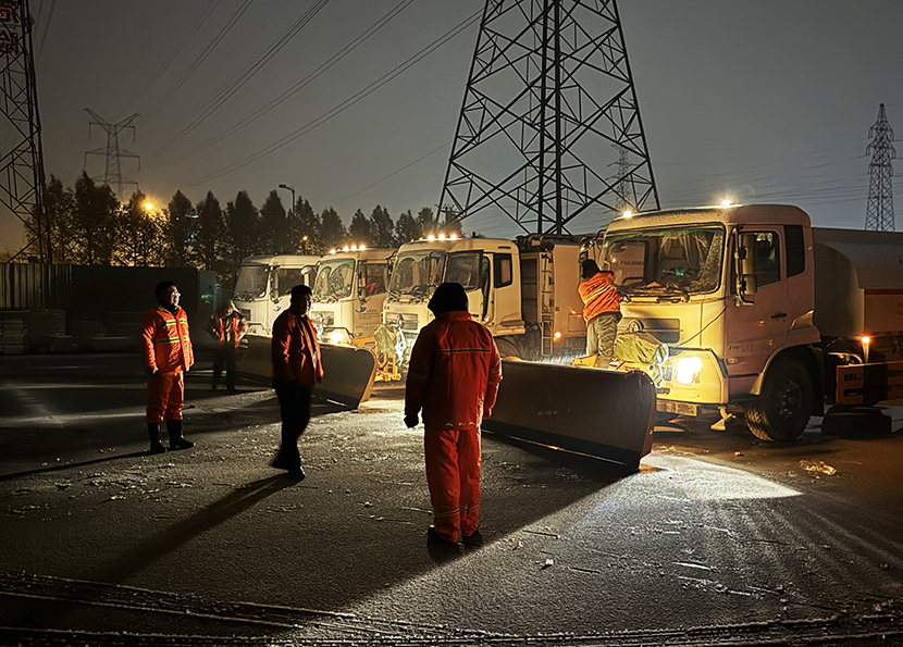 ? ? 環(huán)衛(wèi)分公司、盛達(dá)市政分公司晝夜奮戰(zhàn),清雪除冰,共出動人員160余人次,大型機(jī)械車輛6架,將轄區(qū)交叉路口、重要地段及橋面、立交坡路等處的冰雪全部清理干凈,確保過往車輛行人的交通安全。