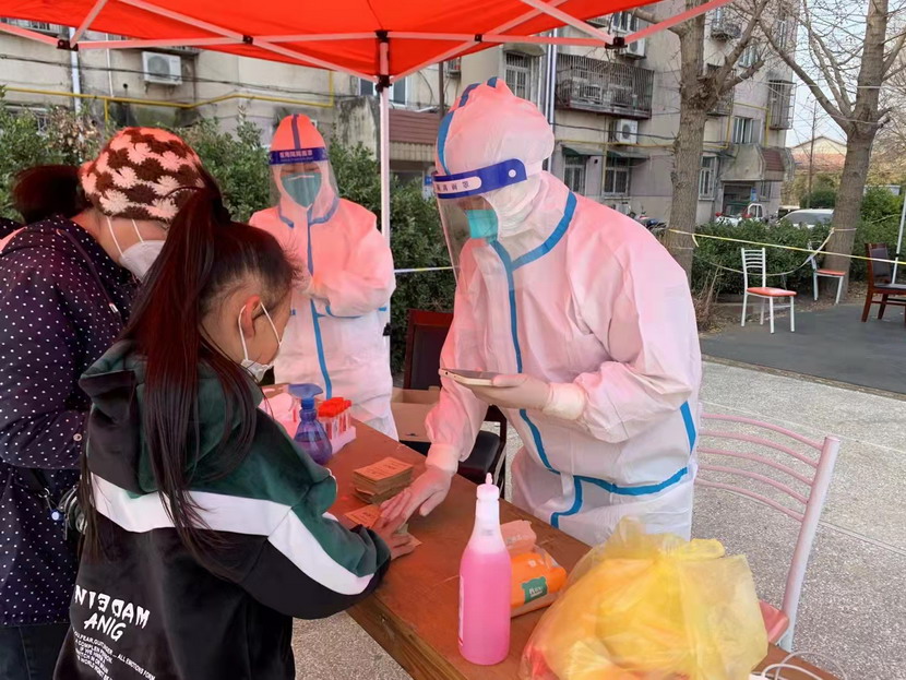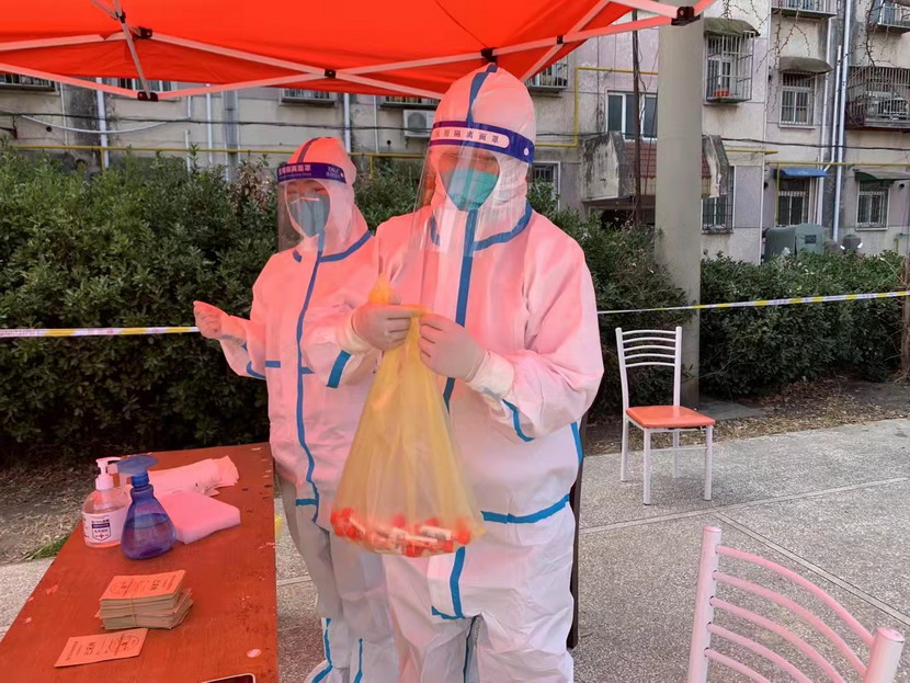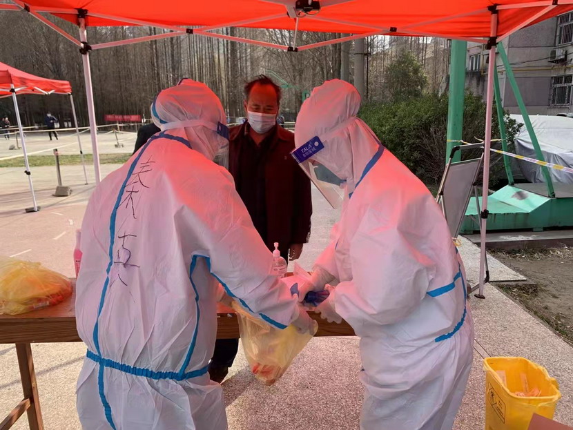 然而隨著疫情越發(fā)嚴(yán)重,小區(qū)核酸檢測(cè)員人手又緊張了起來,“我可以,這幾天我都學(xué)會(huì)了,最基本的我都會(huì)”秦英又是第一個(gè)舉手到最前線。這下她更忙了,每天凌晨三點(diǎn)起床做飯,五點(diǎn)社區(qū)報(bào)到,一直堅(jiān)守到晚上八點(diǎn)。為了節(jié)省防護(hù)服,她一般都要等到中午2點(diǎn)多鐘才休息吃飯,這股毅力讓社區(qū)、街道領(lǐng)導(dǎo)看在眼里,服在心上,連一直牢騷怪話的幾個(gè)群眾也為她由衷地豎起大拇指。