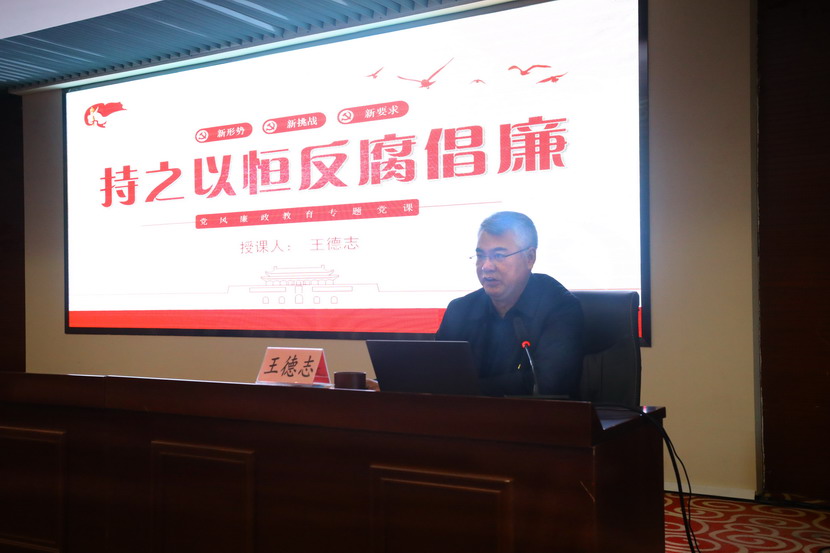 隨后,公司黨委書記、董事長、總經(jīng)理王德志給大家作題為“持之以恒反腐倡廉”的廉政黨課,從當前階段反腐倡廉新形勢、經(jīng)濟發(fā)展與廉政建設(shè)關(guān)系、企業(yè)反腐工作面臨新挑戰(zhàn)、全面落實從嚴治黨總要求四個方面闡述要加強反腐倡廉工作,促進黨風廉政建設(shè)。
