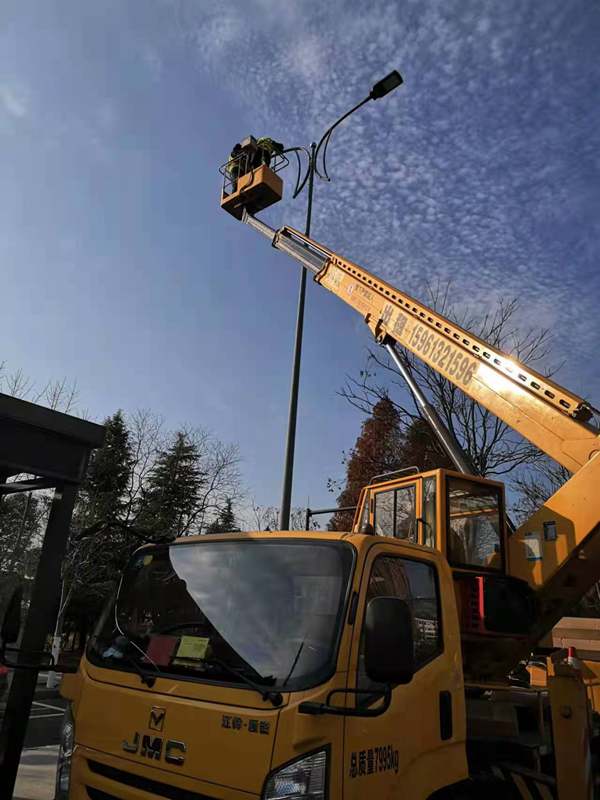 ?早已習(xí)慣了風(fēng)餐露宿的翔立人,中午一碗面條、或是一碗蓋澆飯草草了事,飯后不休息,直接爬上高空作業(yè)車(chē)?yán)^續(xù)工作,運(yùn)輸隊(duì)圍繞著幾臺(tái)高空作業(yè)車(chē)也是忙個(gè)不亦樂(lè)乎,“加浦,像這樣將舊路燈立起來(lái),先貼著車(chē)廂圍一圈,這樣可以多裝點(diǎn)”,既要負(fù)責(zé)將舊路燈收集送到甲方倉(cāng)庫(kù),又要領(lǐng)出來(lái)供給幾個(gè)隊(duì)的物料供應(yīng),同樣是忙的馬不停蹄。大家你追我趕,相互暗暗競(jìng)爭(zhēng)者,賽安全,比質(zhì)量,趕進(jìn)度。晚上收工后,翔立辦公群里各隊(duì)報(bào)工作量“一隊(duì)今天完成了18根桿”,“二隊(duì)今天干得最多了,他們完成20根桿,換了40個(gè)燈頭,不簡(jiǎn)單啊”,“你也不錯(cuò)嗎,一個(gè)人完成了16根桿,還想咋的”,“今天俺們隊(duì)的工具不得手,明天我們隊(duì)一定要超過(guò)你們”,群里大家相互鼓勵(lì)著!